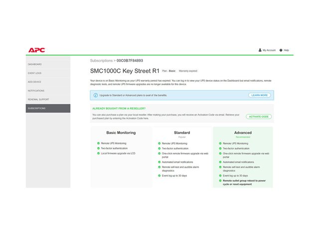 Subscription licence (3 years) - for P/N: SMT1500CNC, SMT750RM2UCNC, SMTL2K2RM2UCLNC, SRTL2K2RM1UWC, SRTL3KRM1UIC, SRTL3KRM1UWC